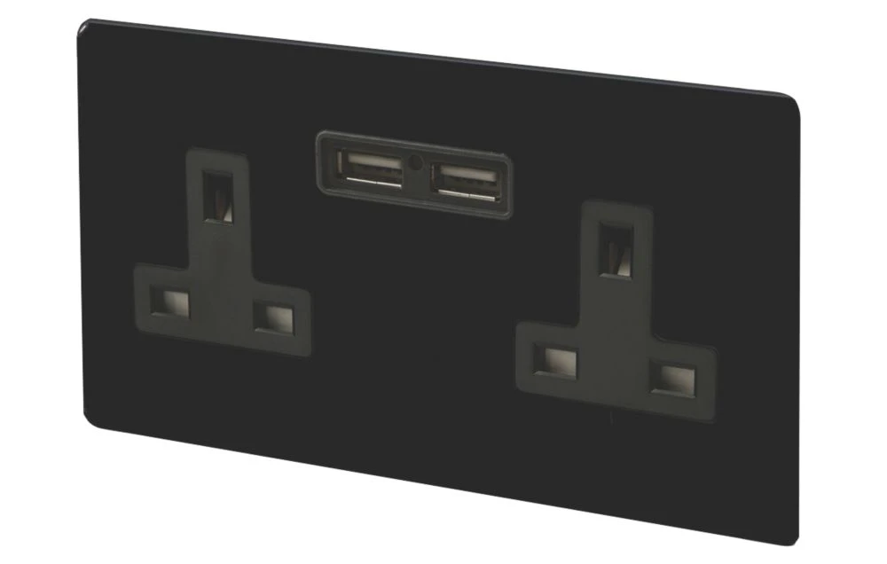 Slim, low profile, screwless faceplate for a sleek, contemporary style. Ideal for charging iPads, iPhones, tablets, mobiles and cameras. USB charging ports can be used with any device, the left-hand USB charging port is optimised for Apple devices and the right-hand USB is for non-Apple devices. Supplied with concealed fixings.