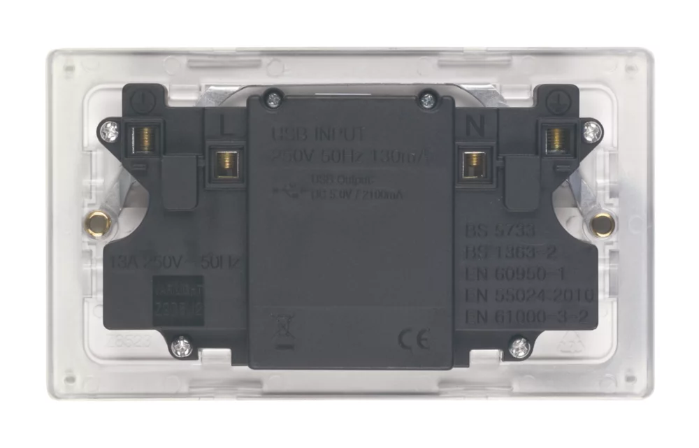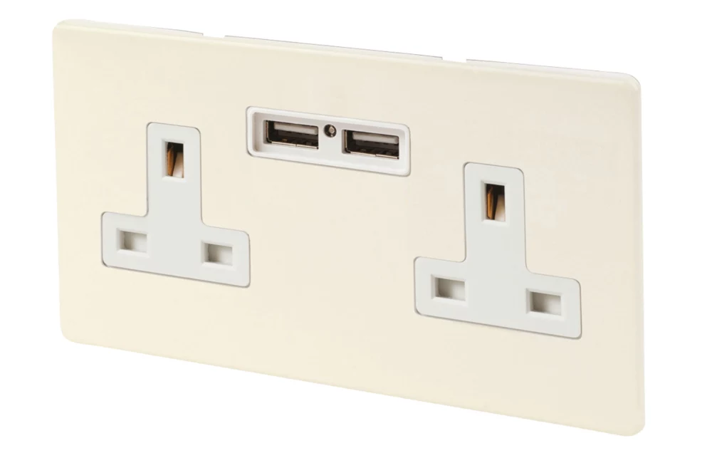 Slim, low profile, screwless faceplate for a sleek, contemporary style. Ideal for charging iPads, iPhones, tablets, mobiles and cameras. USB charging ports can be used with any device, the left-hand USB charging port is optimised for Apple devices and the right-hand USB is for non-Apple devices. Supplied with concealed fixings.