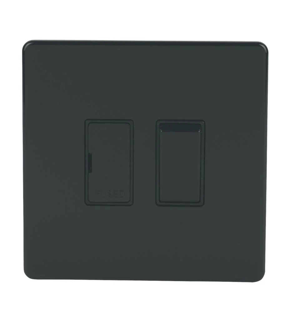 Gloss black, low profile, screwless faceplates matched with rockers and knobs for the ultimate in contemporary switches, sockets and dimmers.