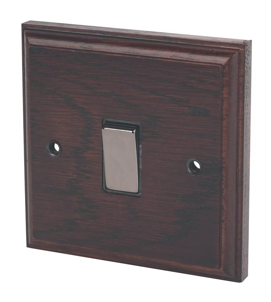 Solid oak wood in a dark finish matched with black nickel controls. Traditionally crafted and finished to the highest standard using both traditional and modern machinery. Highest grade sustainable timber used.